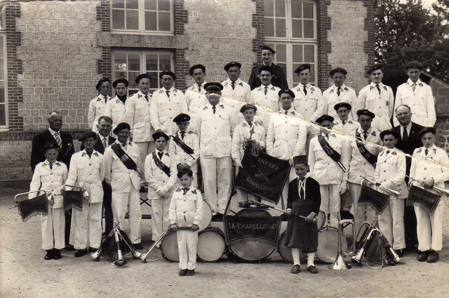 Pantalon blanc, chemise blanche, béret, foulard et épaulettes rouges.